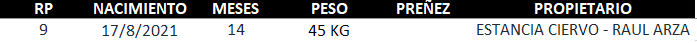 | Establecimiento | ESTANCIA CIERVO - RAUL ARZA |