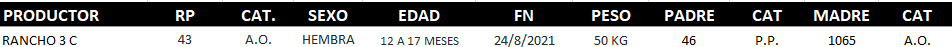 | Establecimiento | RANCHO 3C - CARLOS SIENRA |