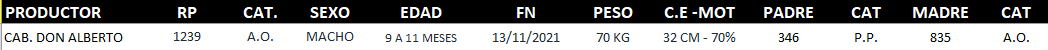 PREMIO: 2DO PREMIO - RVDO GRAN CAMPEON CORDERO