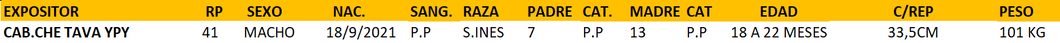 PREMIACION: PRIMER PREMIO-RESERVADO CAMPEON DE CATEGORIA