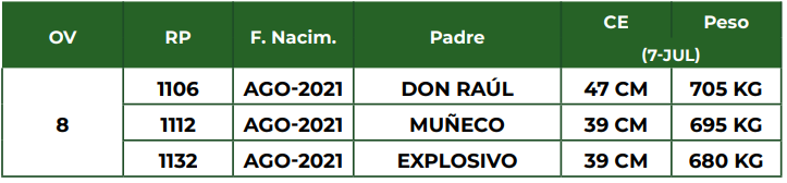 LOTE 8 - RP 1112, MACHOS PC Lote Anterior Volver al remate Lote Siguiente Información del Lote Animal Pedigree Ofertar Contacto Buenos Aires - Benito Juarez Información del Lote Identificador: #230309 Categoría Toros PC Departamento Buenos Aires Ubicación Benito Juarez Buenos Aires - Benito Juarez Ofertar Fecha de cierre: 16 de Agosto a las 12:00hs. Aún no tiene ofertas Animales: 1112 Plazo: Contado 30 días 45 días 60 días 90 días 120 días 180 días Contado, 30 y 60 dias Su Oferta en $: − + Step: -25.000,00 / +25.000,00 Programar puja hasta: Programar puja hasta Aumentar puja programada 850000 1300000 **Oferta al bulto Iniciar sesión para ofertar Ofertar Compra por $ 99.000.000,00 Ofertas Recibidas $ Fecha/Hora Estado Este lote aún no tiene preofertas. ¿Estás seguro de comprar el LOTE MACHOS PC por $ 99000000 ? 13 Visualizaciones ClicData Animal RP 1112 PADRE Muñeco NAC ago-21 CE 39 PF 695 PRECIO BASE 0.00 RP 1112 PADRE Muñeco NAC ago-21 CE 39 PF 695 PRECIO BASE 0.00 Pedigree Contacto Empresa: GANADERA AZUL SRL Nombre*: E-mail* : Mensaje Enviar Registrese gratis Este contenido Exclusivo está disponible sólo para usuarios registrados Ingresar