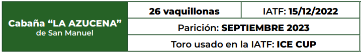 LOTE 2, Cabaña “LA AZUCENA” de San Manuel, VAQUILLONAS PC Lote Anterior Volver al remate Lote Siguiente Información del Lote Pedigree Ofertar Contacto Buenos Aires - Benito Juarez Información del Lote Identificador: #230415 Cantidad 26 Categoría Vaquillonas PC Departamento Buenos Aires Ubicación Benito Juarez Buenos Aires - Benito Juarez Ofertar Fecha de cierre: 16 de Agosto a las 12:00hs. Aún no tiene ofertas Plazo: Contado 30 días 45 días 60 días 90 días 120 días 180 días Contado, 30 y 60 dias Su Oferta en $: − + Step: -20.000,00 / +20.000,00 Programar puja hasta: Programar puja hasta Aumentar puja programada 400000 760000 **Oferta al bulto Iniciar sesión para ofertar Ofertar Compra por $ 99.000.000,00 Ofertas Recibidas $ Fecha/Hora Estado Este lote aún no tiene preofertas. ¿Estás seguro de comprar el LOTE Cabaña “LA AZUCENA” de San Manuel, VAQUILLONAS PC por $ 99000000 ? 10 Visualizaciones ClicData Pedigree Contacto Empresa: GANADERA AZUL SRL Nombre*: E-mail* : Mensaje Enviar Registrese gratis Este contenido Exclusivo está disponible sólo para usuarios registrados Ingresar