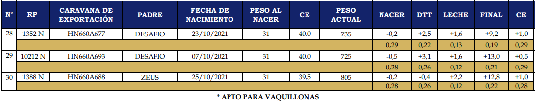 LOTE 12, TOROS ANGUS PUROS CONTROLADOS Lote Anterior Volver al remate Lote Siguiente Información del Lote Animales del Lote Pedigree Ofertar Contacto Buenos Aires - 9 de Julio. - Buenos Aires. Información del Lote Identificador: #232555 Cantidad 3 Categoría Toros Departamento Buenos Aires Ubicación 9 de Julio. - Buenos Aires. Buenos Aires - 9 de Julio. - Buenos Aires. Ofertar Fecha de cierre: 30 de Agosto a las 20:00hs. Aún no tiene ofertas Animales: (28) 1352 N (29) 10212 N (30) 1388 N Plazo: Contado 30 días 45 días 60 días 90 días 120 días 180 días Contado, 30 y 60 dias Su Oferta en $: − + Step: -50.000,00 / +50.000,00 Programar puja hasta: Programar puja hasta Aumentar puja programada 750000 1650000 **Oferta al bulto Iniciar sesión para ofertar Ofertar Compra por $ 99.000.000,00 Ofertas Recibidas $ Fecha/Hora Estado Este lote aún no tiene preofertas. ¿Estás seguro de comprar el LOTE TOROS ANGUS PUROS CONTROLADOS por $ 99000000 ? 36 Visualizaciones ClicData Animales del Lote RP (28) 1352 N (29) 10212 N (30) 1388 N PADRE DESAFIO DESAFIO ZEUS NAC 23/10/2021 7/10/2021 25/10/2021 CE 40 40 39,5 PF 735 725 805 PN 31 31 31 PRECIO BASE 0.00 0.00 0.00 RP (28) 1352 N PADRE DESAFIO NAC 23/10/2021 CE 40 PF 735 PN 31 PRECIO BASE 0.00 RP (29) 10212 N PADRE DESAFIO NAC 7/10/2021 CE 40 PF 725 PN 31 PRECIO BASE 0.00 RP (30) 1388 N PADRE ZEUS NAC 25/10/2021 CE 39,5 PF 805 PN 31 PRECIO BASE 0.00 Pedigree Contacto Empresa: La Cassina Nombre*: E-mail* : Mensaje Enviar Registrese gratis Este contenido Exclusivo está disponible sólo para usuarios registrados Ingresar