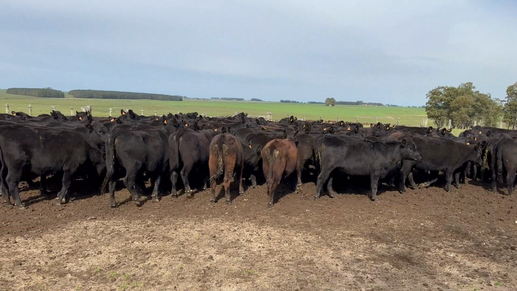 Muy buen lote de vaquillonas de clase muy parejas y estado también, se ven distintos tamaños ya que hay un 25% menor a 18 meses. Bien encaminadas para preñarse en primavera. Hay 5 con querato en tratamiento. Van a ganar kg a la entrega. Saben comer ración. Nunca fueron entoradas.