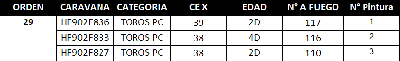 LOTE 29, TOROS PUROS POR CRUZA