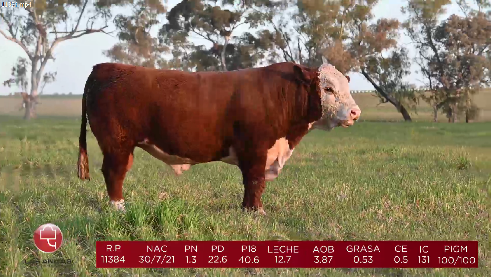 | OBSERVACIONES | Gran expresion en este hijo del "Cuarteto" en una de las astadas con mejor calidad de ubre del programa, hija del "Jeque". Muy largo y ancho, de los primeros en pelecharse. |