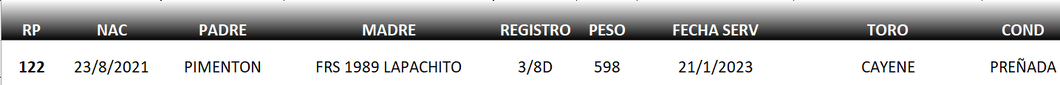 Vaquillas Preñadas Registradas