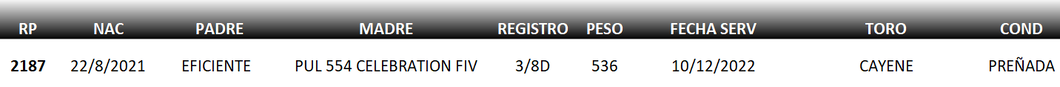 Vaquillas Preñadas Registradas