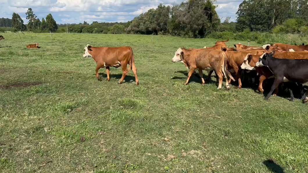 Lote desparejo en tamaño. Machos enteros. Hay 13/14 terneros de 100 kg aprox y 10-12 de 220/230 kg. Estan a campo. Saben comer!