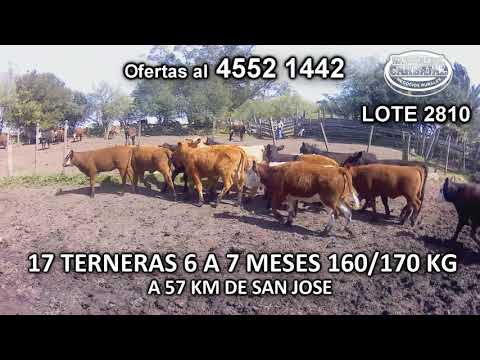 LOTE 33, 17 Terneras 5 AA- 4 RA- 2 CH c/ HE- 2 HE c/ RA- 2 HE- 2 HE c/ AA a remate en Remate por pantalla #78 160/ 170 Kgkg - en Carreta Quemada- A 57 Km de San Jose