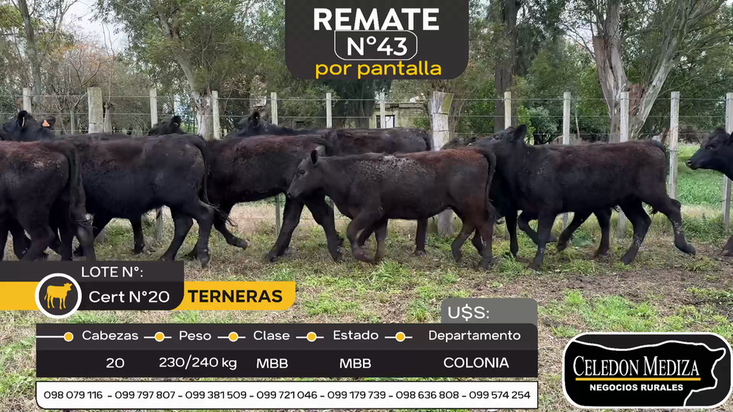 LOTE 33, 20 Terneras en Estanzuela, Colonia