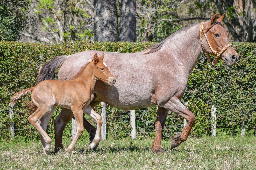 Viene al pie con una potranca rosilla nacida esta primavera. Esta potranca presenta un interesante inbreading con Mosquetero, es hija de Altanero del Paso 215.