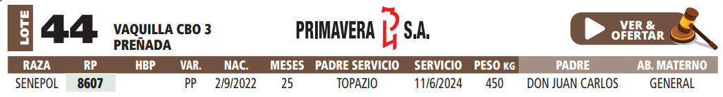 Vaquillas Preñadas Registradas