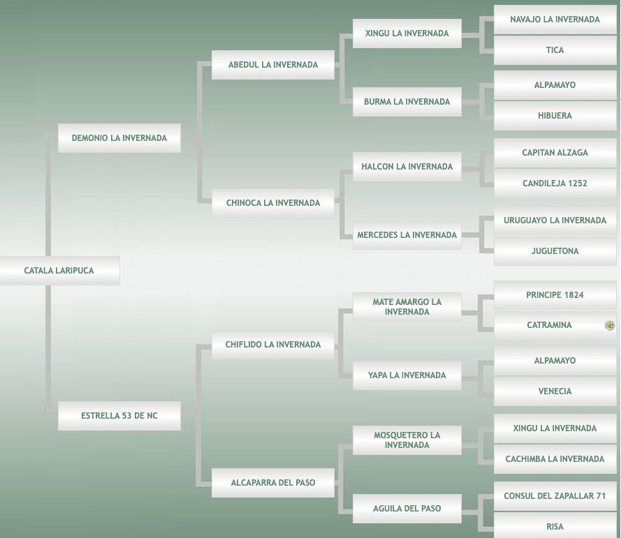 Lindo moro. Es hijo de Demonio La Invernada (hermano entero de Gauchada La Invernada ganadora de marcha Salto 2015). Su madre es hija de Alcaparra Del Paso (4ta en marcha FICC Bolivar 2003 y madre de Milonga del Catalán, 2da Marcha Guichon 2011)