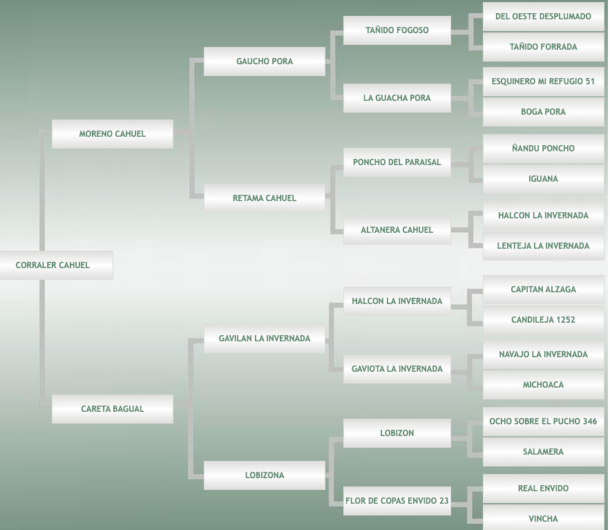 Por madre Careta Bagual yegua mora de la cría y regalada por el propio Miguel A Larriera.