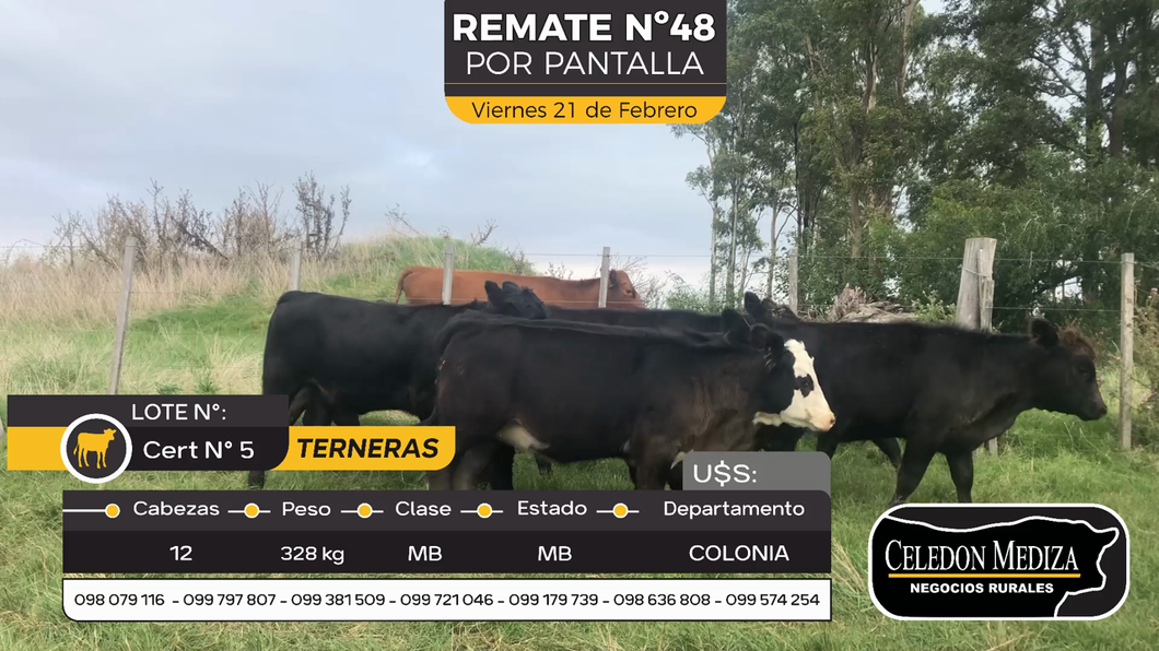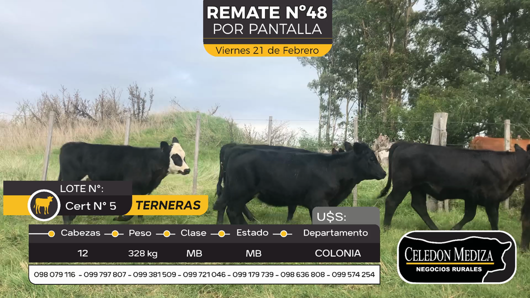 LOTE 21, 12 Terneras en Riachuelo, Colonia