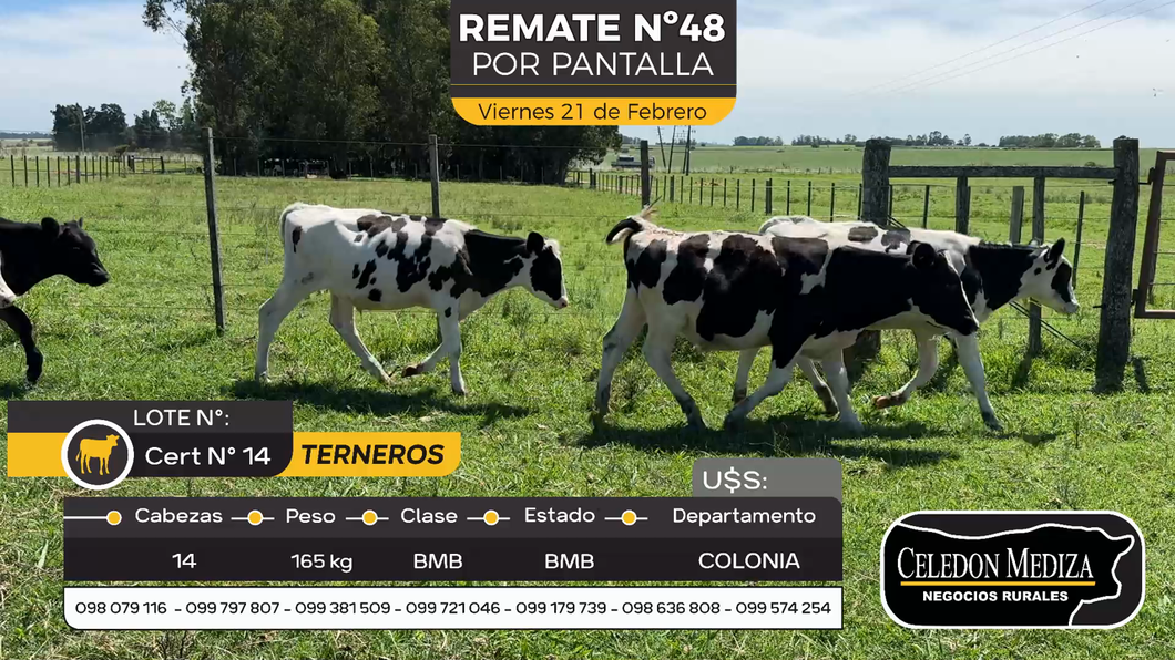LOTE 1, 14 Terneros en Tarariras, Colonia