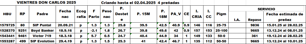 Fecha estimada de preñez 15.01.25 al 28.02.25