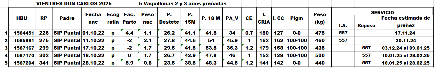 | OBSERVACIONES | Fecha estimada de preñez 10.01.25 al 28.02.25 |