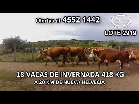 LOTE 27, 18 Vacas de Invernada 13 POLL HE- 1 HE c/ AA- 2 CH c/ HE- 1 BRAFORD- 1 HE c/ RA a remate en Pantalla #81 418 Kgkg - en Cufre- A 20 Km de Nueva Helvecia
