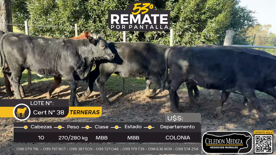 Muy buen lote de terneras cruza con alguna vaquillona en el lote. Destacada por su estado y desarrollo. Aptas para cualquier destino pero recomendadas para abasto rápido sobre buenas comidas. Son sanas, conocen eléctrico y saben comer ración. Lote recomendado.