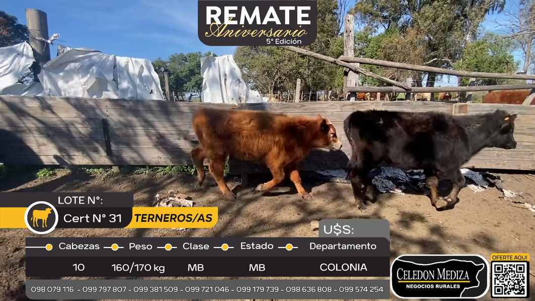 LOTE 70, 10 Terneros y Terneras en Otra Localidad, Colonia