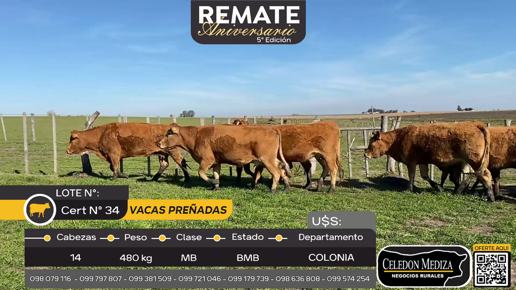 LOTE 78, 14 Vacas preñadas en La Horqueta, Colonia