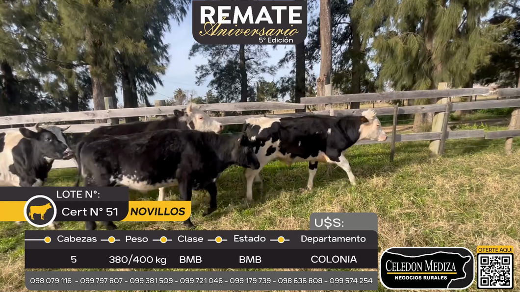 LOTE 42, 5 Novillos en Ruta 21, Colonia