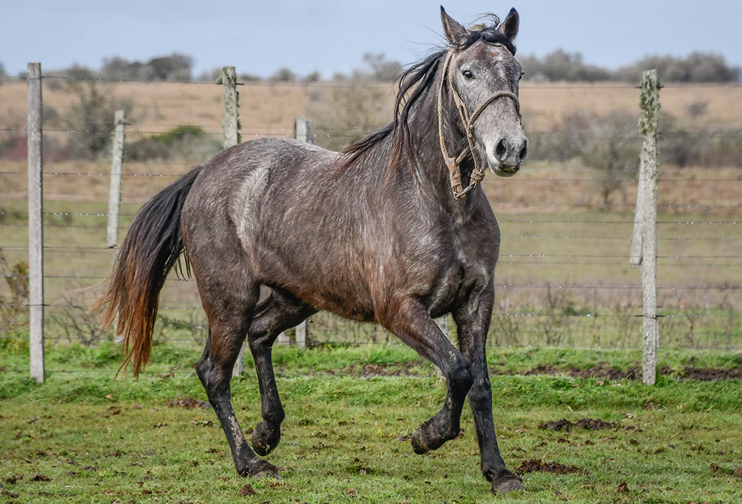 Esta tordilla tiene un pedigree muy destacado, hija de Lavandera LI, mora adquirida de potra en el remate en La Invernada, que se doma y demuestra sus excelentes condiciones, de mansedumbre, docilidad especialmente lo buen pingo que es. Nunca se pudo probar en competencias, ya que una lesión fija le impidió, pero si tuvo mucho tiempo campereando en La Flechilla, dando gusto montarla. En su línea genética tiene a Poncho E´lana y Lancero, padrillos destacados en Cabaña La Invernada.