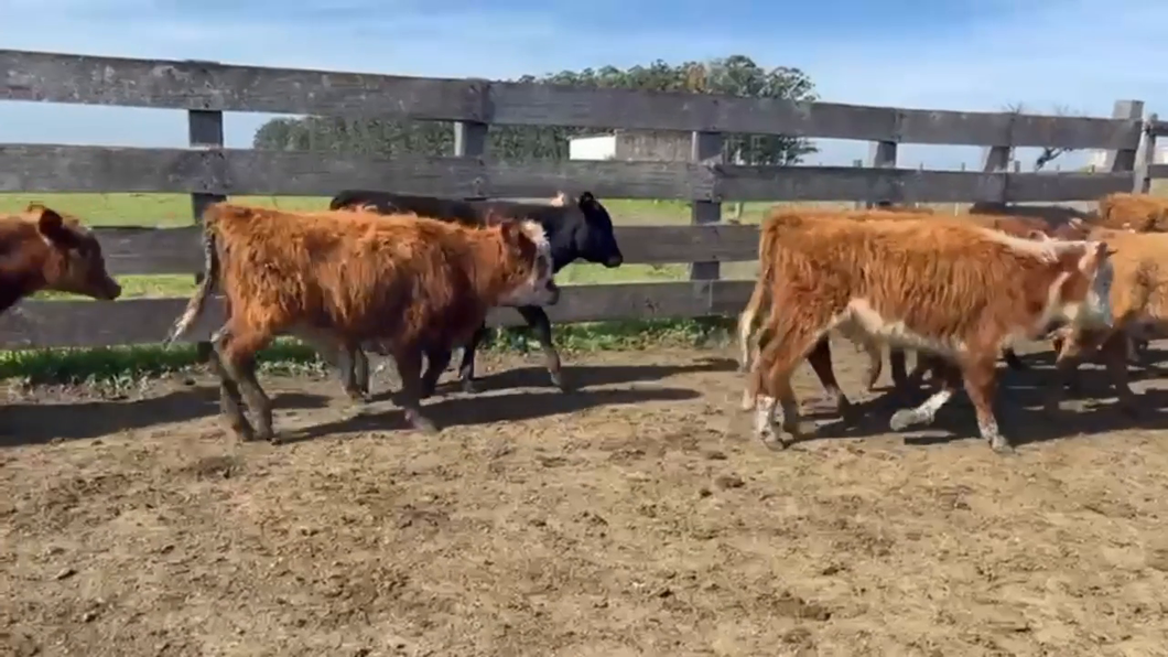 Lote de terneros livianos, 100% cruzas, de moderado desarrollo variados en su estado y tamaño, están fuertes con 5-6 un poco más sentidos. Correcta reposición. 15 c/cicatriz de queratoconjuntivitis, y 4 c/micosis localizada.