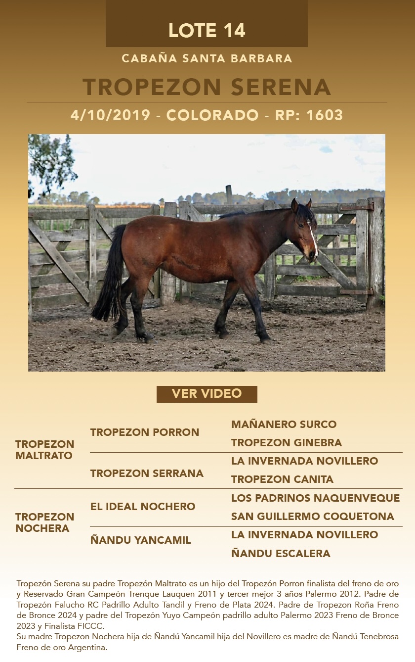 LOTE 14, TROPEZON SERENA Lote Anterior Volver al remate Lote Siguiente Ficha Contacto Ofertar Buenos Aires - Ficha del Lote Identificador: #338802 Categoría: Macho Pedigree Buenos Aires - Ofertar Fecha de cierre: 22 de Septiembre a las 14:00hs. Aún no tiene ofertas Plazo: Contado 30 días 45 días 60 días 90 días 120 días 180 días Contado, 30 y 60 dias Su Oferta en $: − + Step: -10.000,00 / +10.000,00 Programar puja hasta: Programar puja hasta Aumentar puja programada 270000 450000 **Oferta al bulto Iniciar sesión para ofertar Ofertar Compra por $ 99.000.000,00 Ofertas Recibidas $ Fecha/Hora Estado Este lote aún no tiene preofertas. ¿Estás seguro de comprar el LOTE TROPEZON SERENA por $ 99000000 ? 133 Visualizaciones ClicData Contacto Empresa: El Rincón Criollos Nombre*: Teléfono* : E-mail* : Mensaje Enviar
