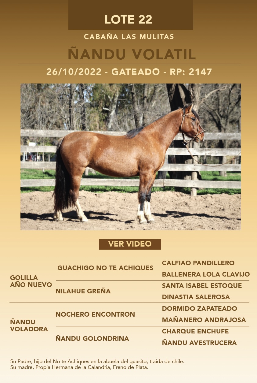 LOTE 22, ÑANDU VOLATIL 🔥 🔥 🔥 Lote Anterior Volver al remate Lote Siguiente Ficha Contacto Ofertar Buenos Aires - Ficha del Lote Identificador: #338810 Categoría: Macho Pedigree Buenos Aires - Ofertar Fecha de cierre: 22 de Septiembre a las 14:00hs. Aún no tiene ofertas Plazo: Contado 30 días 45 días 60 días 90 días 120 días 180 días Contado, 30 y 60 dias Su Oferta en $: − + Step: -10.000,00 / +10.000,00 Programar puja hasta: Programar puja hasta Aumentar puja programada 270000 450000 **Oferta al bulto Iniciar sesión para ofertar Ofertar Compra por $ 99.000.000,00 Ofertas Recibidas $ Fecha/Hora Estado Este lote aún no tiene preofertas. ¿Estás seguro de comprar el LOTE ÑANDU VOLATIL por $ 99000000 ? 216 Visualizaciones ClicData Contacto Empresa: El Rincón Criollos Nombre*: Teléfono* : E-mail* : Mensaje Enviar