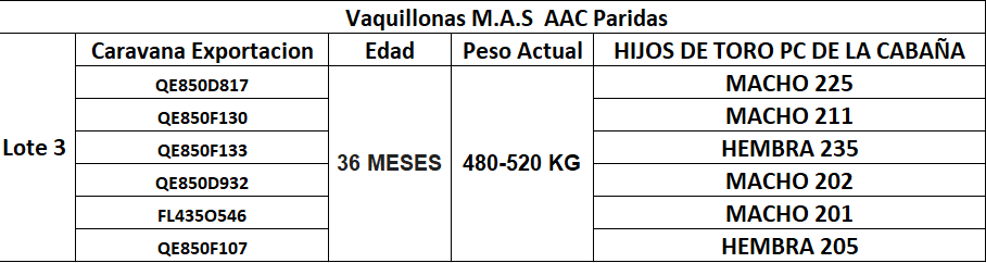 LOTE 3, Vaquillonas M.A.S de 3 años Santa Yvone