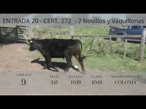 LOTE 20, 9 Novillos 1 a 2 años 3RA, 2RAxHE, 1AAxNO, 3 AA a remate en Pantalla #14 347kg - en Ruta 2 km 152,500 (colonia)
