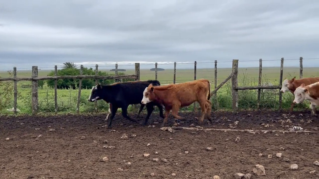Buenos terneros, 100% cruzas, mayoría de buen desarrollo y conformaciones, con algunos más chicos y nuevos. Bien fuertes, algunos con secuela de queratoconjuntivitis. ¡Buen lote! ENTEROS