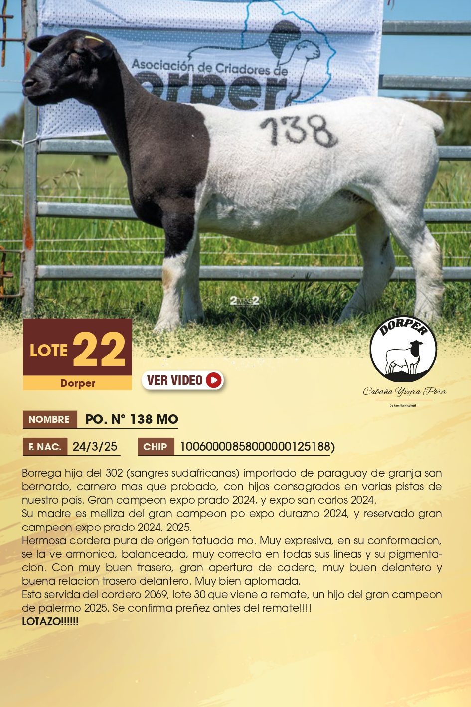 LOTE 22 - Dorper, 22 - Dorper 🔥 🔥 🔥 Lote Anterior Volver al remate Lote Siguiente Ficha Contacto Ofertar Canelones - Ficha del Lote Identificador: #347393 Categoría: Borregas Pedigree Plazo 12 cuotas Información Genética RP 138 RP 138 PRECIO BASE 0.00 NOMBRE PO. Nº 138 MO Canelones - Ofertar Fecha de cierre: 08 de Noviembre a las 12:00hs. Aún no tiene ofertas Animales: 138 Plazo: Contado 30 días 45 días 60 días 90 días 120 días 180 días Contado, 30 y 60 dias 12 CUOTAS Su Oferta en $: (por 12 cuotas) − + Step: -10,00 / +10,00 Programar puja hasta: Programar puja hasta Aumentar puja programada 60 240 Iniciar sesión para ofertar Ofertar Compra por $ 99.000.000,00 Ofertas Recibidas $ Fecha/Hora Estado Este lote aún no tiene preofertas. ¿Estás seguro de comprar el LOTE 22 - Dorper por 12 cuotas de $ 99000000 ? 85 Visualizaciones ClicData Contacto Empresa: JUAN FRANCISCO CHIRUCHI Nombre*: Teléfono* : E-mail* : Mensaje Por informes y consultas 099977007 Enviar Registrese gratis Este contenido Exclusivo está disponible sólo para usuarios registrados Ingresar