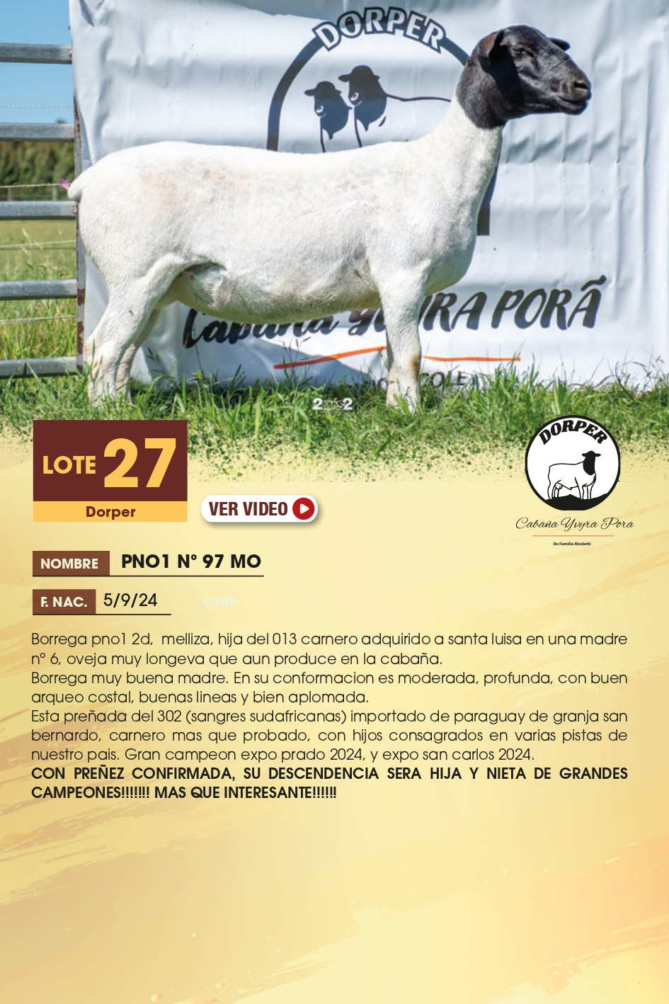 LOTE 27 - Dorper, 27 - Dorper 🔥 🔥 🔥 Lote Anterior Volver al remate Lote Siguiente Ficha Contacto Ofertar Canelones - Ficha del Lote Identificador: #347398 Categoría: Borregas Pedigree Plazo 12 cuotas Información Genética RP 97 R RP 97 R PRECIO BASE 0.00 NOMBRE PNO1 Nº 97 MO Canelones - Ofertar Fecha de cierre: 08 de Noviembre a las 12:00hs. Aún no tiene ofertas Animales: 97 R Plazo: Contado 30 días 45 días 60 días 90 días 120 días 180 días Contado, 30 y 60 dias 12 CUOTAS Su Oferta en $: (por 12 cuotas) − + Step: -10,00 / +10,00 Programar puja hasta: Programar puja hasta Aumentar puja programada 60 240 Iniciar sesión para ofertar Ofertar Compra por $ 99.000.000,00 Ofertas Recibidas $ Fecha/Hora Estado Este lote aún no tiene preofertas. ¿Estás seguro de comprar el LOTE 27 - Dorper por 12 cuotas de $ 99000000 ? 56 Visualizaciones ClicData Contacto Empresa: JUAN FRANCISCO CHIRUCHI Nombre*: Teléfono* : E-mail* : Mensaje Por informes y consultas 099977007 Enviar Registrese gratis Este contenido Exclusivo está disponible sólo para usuarios registrados Ingresar