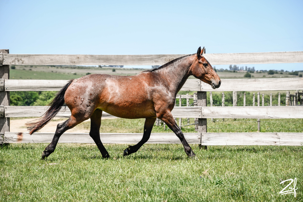 Yegua de muy buen físico, joven, con un pedigrí que nos encanta. Presenta una leve deformación en un cuarto desde prácticamente su nacimiento, que no la perjudica en absoluto. Por ese motivo se descarta para la venta de Criollos para Ganar 2026. Es hija de Macabra, yegua que obtuvo el 4to. puesto en la Marcha de Minas.