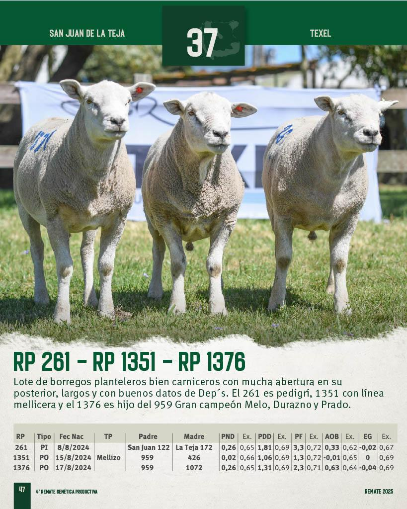 LOTE 37 - TEXEL, 3 Borregos a remate en 4º Genetica Productiva, San José