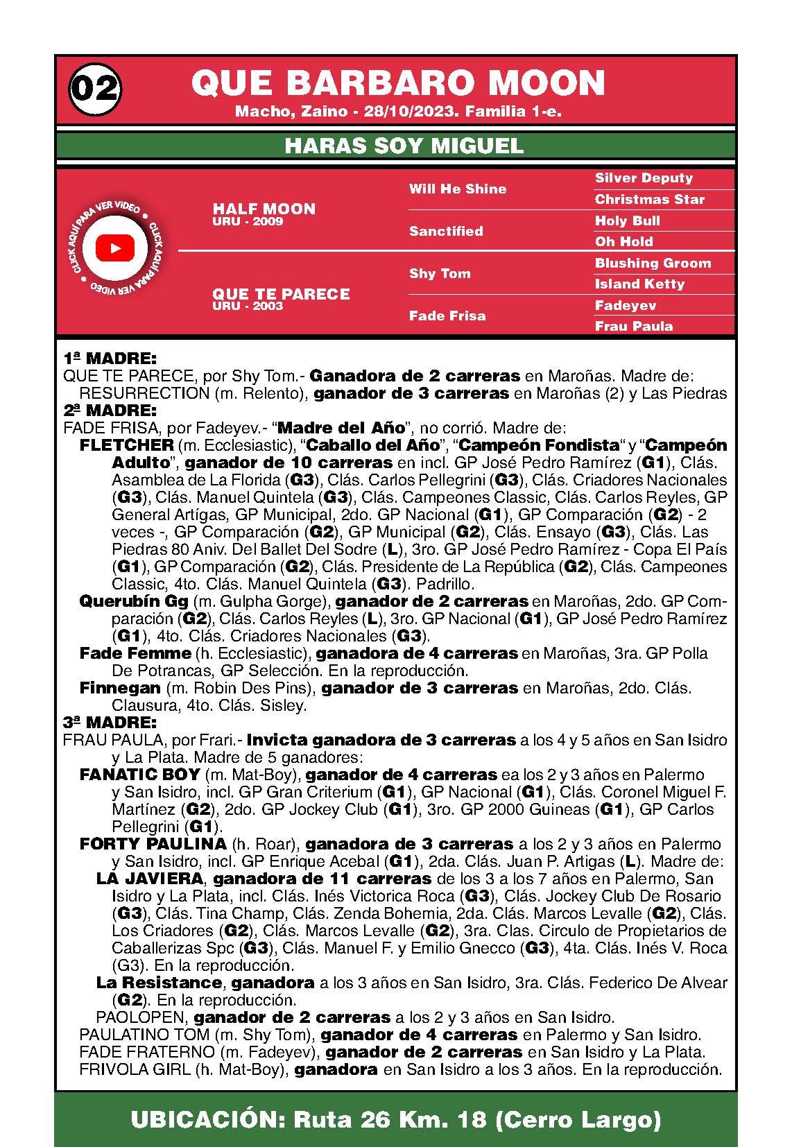 LOTE 2, QUE BARBARO MOON 🔥 🔥 🔥 Lote Anterior Volver al remate Lote Siguiente Ficha Contacto Ofertar Cerro Largo - Melo Ficha del Lote Identificador: #348857 Categoría: Potrillo Pedigree Cerro Largo - Melo Ofertar Fecha de cierre: 18 de Noviembre a las 17:00hs. Aún no tiene ofertas Plazo: Contado 30 días 45 días 60 días 90 días 120 días 180 días Contado, 30 y 60 dias Su Oferta en U$S: − + Step: -10,00 / +10,00 Programar puja hasta: Programar puja hasta Aumentar puja programada 370 550 **Oferta al bulto Iniciar sesión para ofertar Ofertar Compra por U$S 99.000.000,00 Ofertas Recibidas U$S Fecha/Hora Estado Este lote aún no tiene preofertas. ¿Estás seguro de comprar el LOTE QUE BARBARO MOON por U$S 99000000 ? 50 Visualizaciones ClicData Contacto Empresa: JUAN FRANCISCO CHIRUCHI Nombre*: Teléfono* : E-mail* : Mensaje Por informes y consultas 099977007 Enviar Registrese gratis Este contenido Exclusivo está disponible sólo para usuarios registrados Ingresar