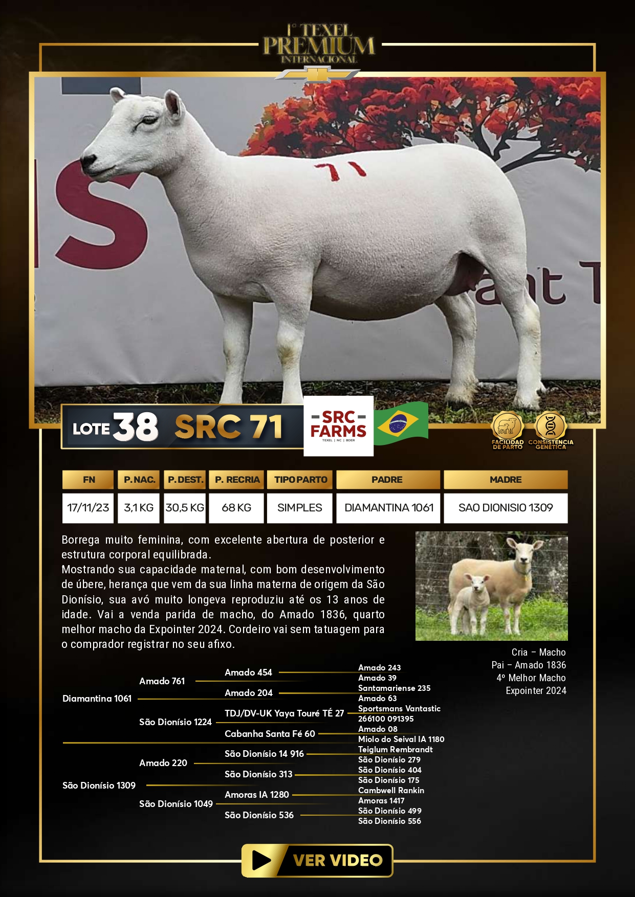LOTE 38 - SRC Farms, Borregas a remate en 1º Texel Premium Internacional, Brasil