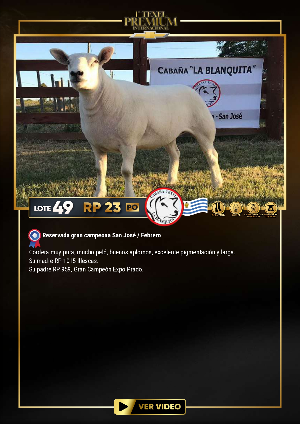 LOTE 49 - Cabaña Texel "La Blanquita", Corderas a remate en 1º Texel Premium Internacional, Canelones Lote Anterior Volver al remate Lote Siguiente Ficha Contacto Ofertar Canelones - Ficha del Lote Identificador: #349644 Categoría: Corderas Pedigree Plazo 12 cuotas Información Genética RP 23 RP 23 PRECIO BASE 70.00 Canelones - Ofertar Fecha de cierre: 22 de Noviembre a las 16:00hs. Aún no tiene ofertas Animales: 23 Plazo: Contado 30 días 45 días 60 días 90 días 120 días 180 días Contado, 30 y 60 dias Su Oferta en U$S: (por 12 cuotas) − + Step: -10,00 / +10,00 Programar puja hasta: Programar puja hasta Aumentar puja programada 90 270 Iniciar sesión para ofertar Ofertar Compra por U$S 99.000.000,00 Ofertas Recibidas U$S Fecha/Hora Estado Este lote aún no tiene preofertas. ¿Estás seguro de comprar el LOTE Corderas a remate en 1º Texel Premium Internacional, Canelones por 12 cuotas de U$S 99000000 ? 12 Visualizaciones ClicData Contacto Empresa: JUAN FRANCISCO CHIRUCHI Nombre*: Teléfono* : E-mail* : Mensaje Por informes y consultas 099977007 Enviar Registrese gratis Este contenido Exclusivo está disponible sólo para usuarios registrados Ingresar