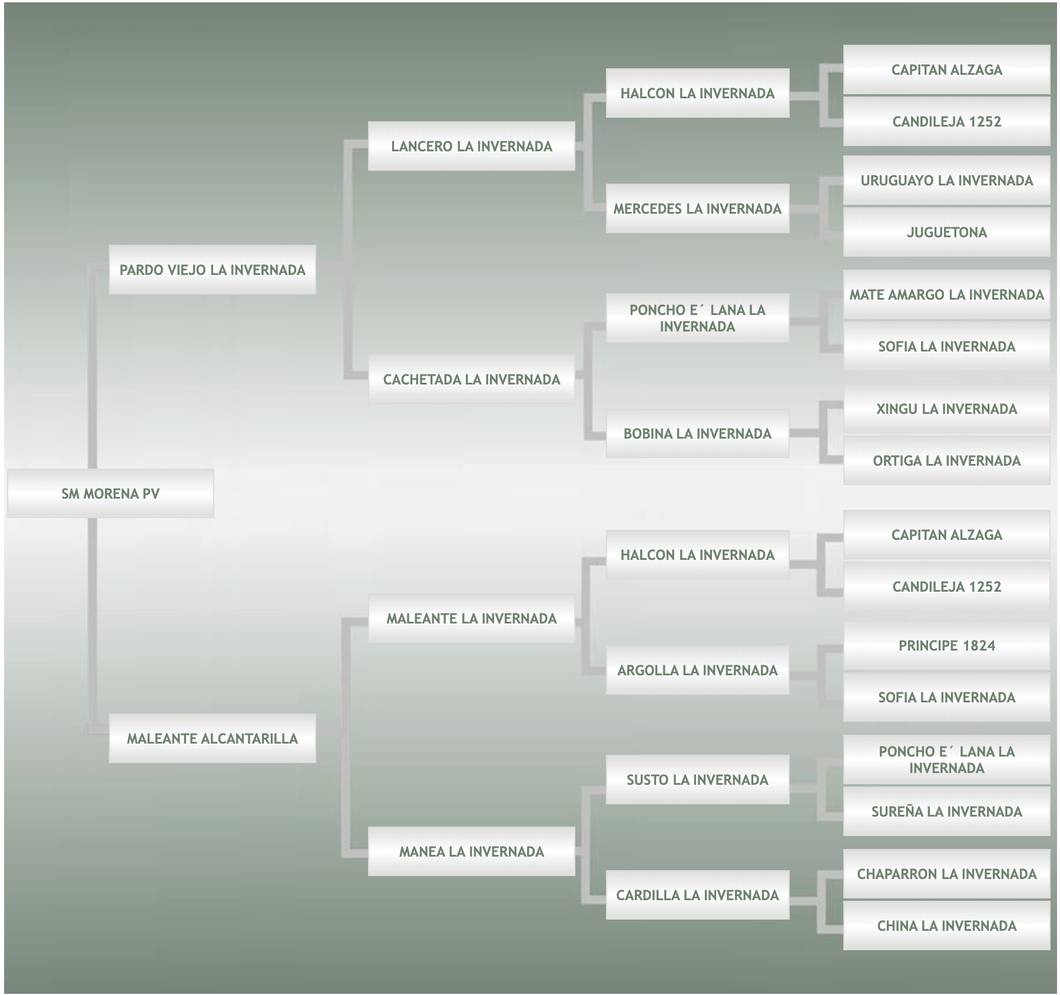 Morena, una yegua con linda edad para ser entrenada. Una yegua con buenos desplazamientos hija de Pardo Viejo la Invernada (Lancero LI) en una madre cría de Santa Mónica de destacado pedigree, hija de Maleante (Halcón La Invernada) x Manea Li (Susto La invernada). Morena es Hermana por parte de madre de SM Bruma, 2da en Marchita Familias criolleras 2025.