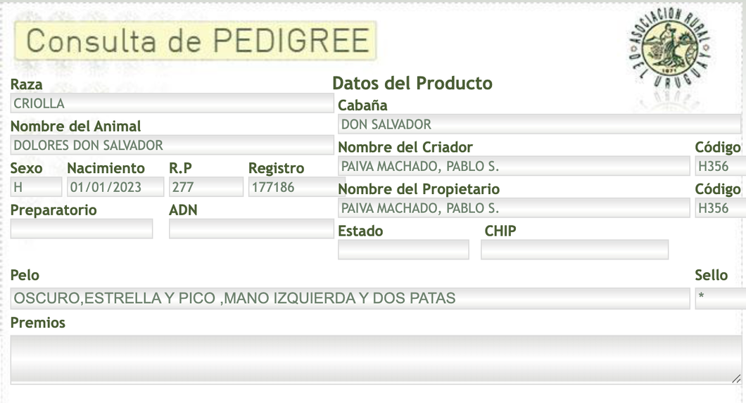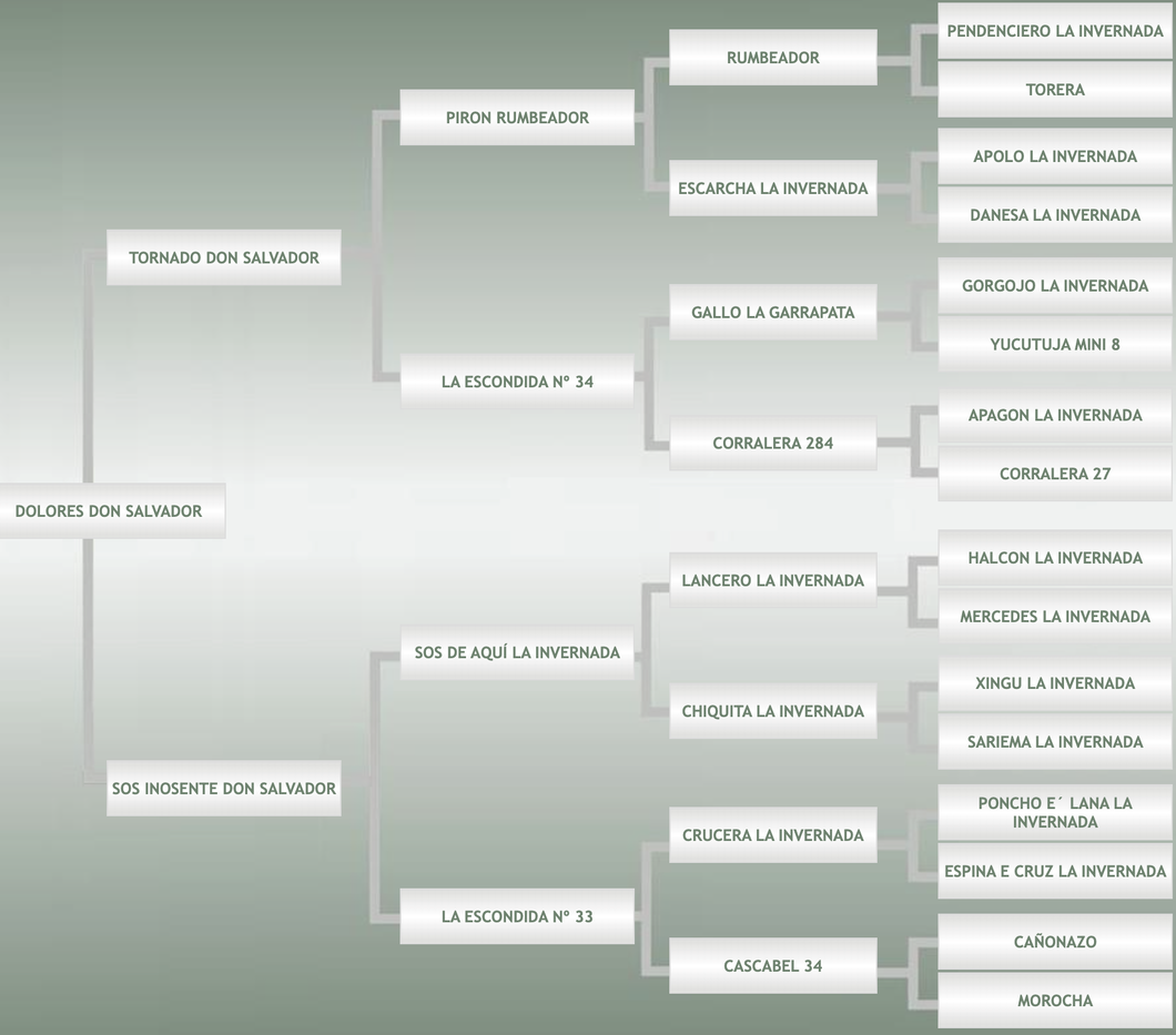 Hijo de Tornado Don Salvador, que combina sangre de el Rumbo y de Don Salvador.