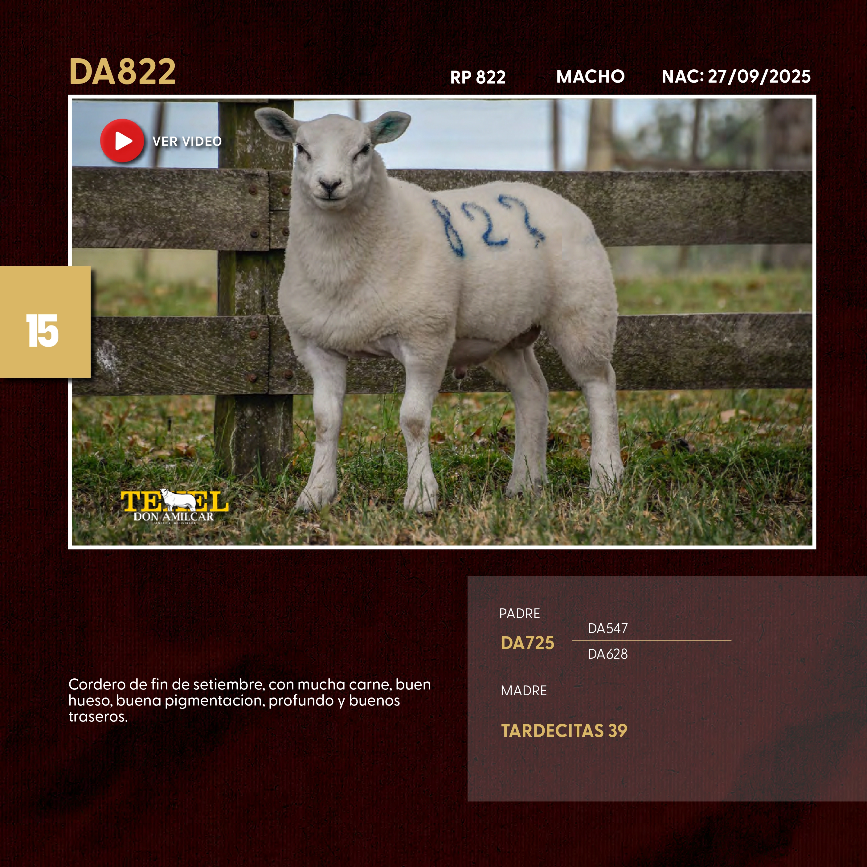 LOTE 15 - Texel Don Amilcar, Borregas a remate en Texel Don Amilcar y Villa Olivar, Cerro Largo Lote Anterior Volver al remate Lote Siguiente Ficha Contacto Ofertar Cerro Largo - Ficha del Lote Identificador: #352464 Categoría: Borregas Pedigree Información Genética RP 822 RP 822 PRECIO BASE 50.00 Cerro Largo - Ofertar Fecha de cierre: 05 de Diciembre a las 17:00hs. Aún no tiene ofertas Animales: 822 Plazo: Contado 30 días 45 días 60 días 90 días 120 días 180 días Contado, 30 y 60 dias Su Oferta en U$S: − + Step: -5,00 / +5,00 Programar puja hasta: Programar puja hasta Aumentar puja programada 60 150 **Oferta al bulto Iniciar sesión para ofertar Ofertar Compra por U$S 99.000.000,00 Ofertas Recibidas U$S Fecha/Hora Estado Este lote aún no tiene preofertas. ¿Estás seguro de comprar el LOTE Borregas a remate en Texel Don Amilcar y Villa Olivar, Cerro Largo por U$S 99000000 ? 8 Visualizaciones ClicData Contacto Empresa: JUAN FRANCISCO CHIRUCHI Nombre*: Teléfono* : E-mail* : Mensaje Por informes y consultas 099977007 Enviar Registrese gratis Este contenido Exclusivo está disponible sólo para usuarios registrados Ingresar