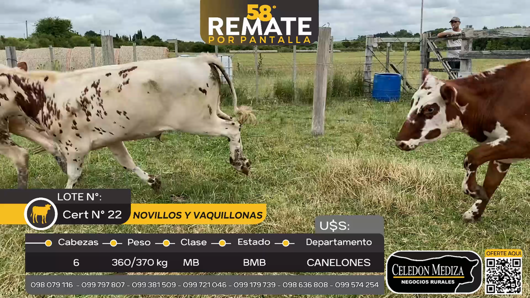 Correcto lote de novillos y vaquillonas, ganado que se encuentra con buen estado y que de seguir sobre buenos disponibles continuarán con buenas ganancias y serán una pesada invernada a término. Lote compuesto por 3 novillos y 3 vaquillonas. Las vaquillonas se encuentran en presencia de toro. Uno de los novillos se encuentra toruno.