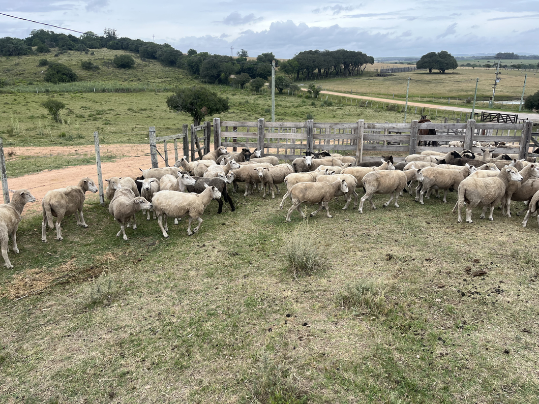 Correcto lote de ovejas formadas , de carcasa muy pesada , ya que no son todas las que presentan buen estado , mayoria texel y suffolk alguna corriedale . Casi todas criando , minimo 40 maximo 61 kg. En algunas se observan edemas faciales por posible parasitosis/falta de desparasitacion