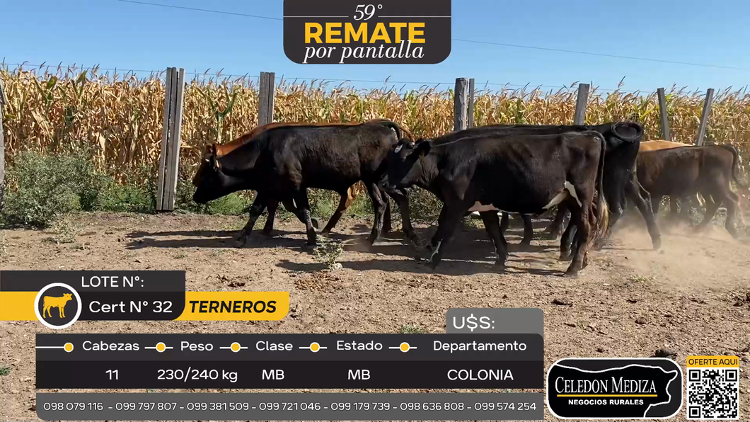 Buen lote de terneros con buen desarrollo para la edad, lore algo desparejo por diferencia de edad. Terneros que por sus cruzas serán una pesada invernada a termino. Lote recomendado