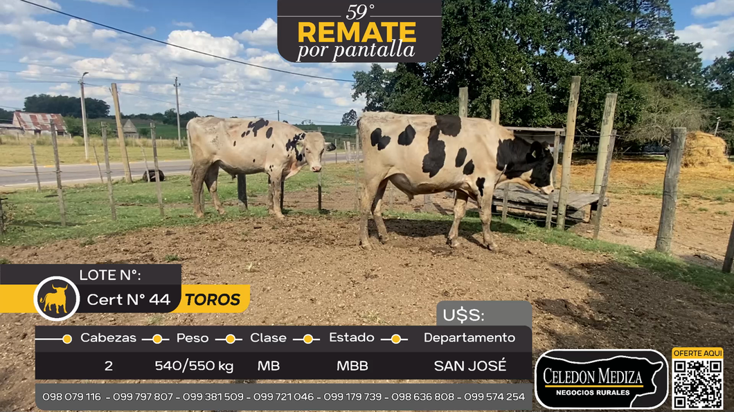 | Observaciones | - KOLDING 1786 DOLOMITA LOVERMAN nacido 07/08/23. Su madre en tercer lactancia produjo 12040 ltrs a 3.26%G y 3.23%P. Un toro muy correcto en todas sus partes, con un padre de origen español muy bueno en ubres y facilidad de parto. - KOLDING 1881 K-AVATAR CLIFF nacido 30/05/24. Su madre produjo en primer lactancia y 328 días 6782 ltrs a 4.37%G y 3.55%P. Un toro muy correcto con buenas patas y buena grupa. Su madre es de tamaño moderado. |