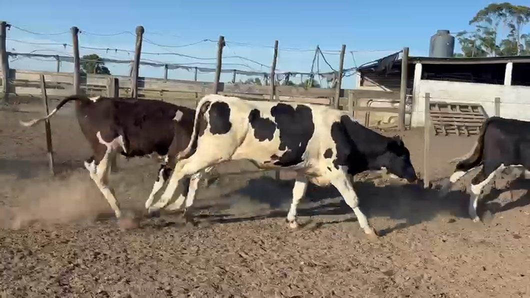 Lote de novillos holando, parejos de clase estado y tipo. De buen desarrollo , se encuentran en un confinamiento a base de fardo y suero. Novillos que continuando en un buen sistema pastoril seguirán con su buena ganancia diaria, una linda reposición para novillos pesados y precoz a termino.Pesados con una noche de encierro